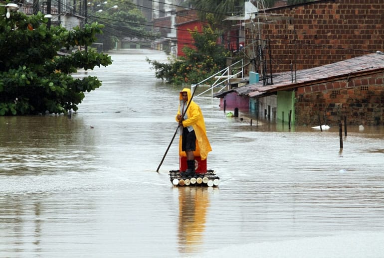A enchente assola bairros pobres, pessoas pobres. São eles os maiores prejudicados, mendigos arrastados, mergulhados no mar criado.